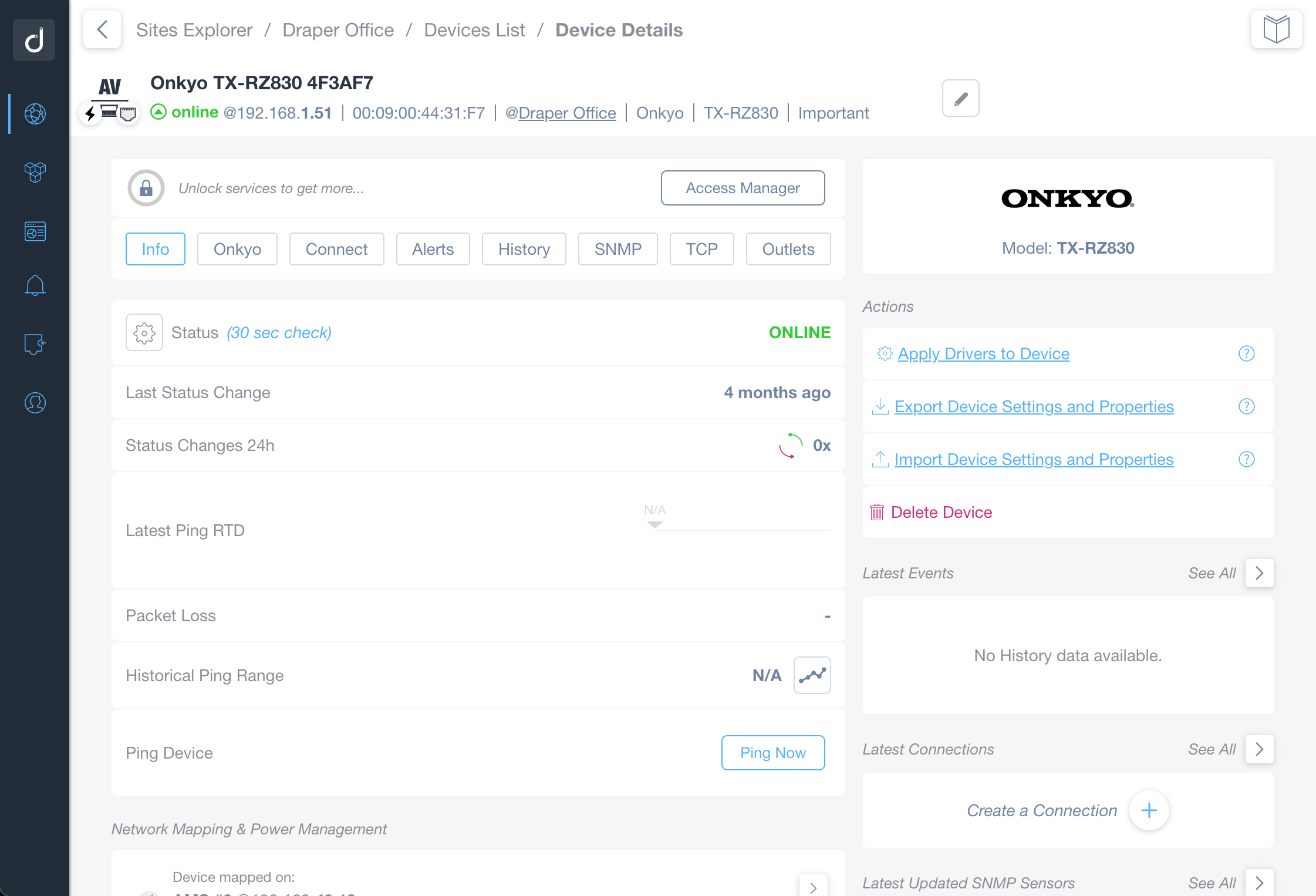 Use Domotz with Onkyo to offer proactive maintenance and service programs to your customers